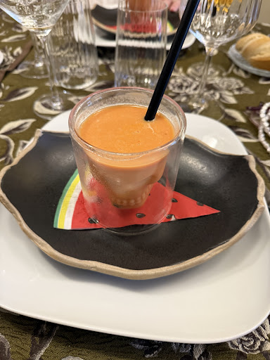 Una entrada que rompe moldes. El tradicional gazpacho andaluz se reinventa con la suavidad y dulzor de la horchata, logrando un equilibrio inesperado pero adictivo. Fresco, original y absolutamente refrescante. Un inicio que invita a pensar que aquí nada será convencional.