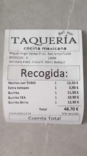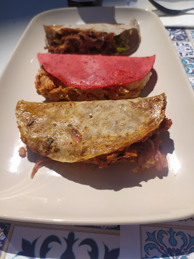 Read moreTenía ganas de probar este sitio y no nos ha defraudado, nada más llegar el camarero super amable aconsejando que pedir y sobre todo la cerveza para probar cosas nuevas y mexicanas. Con la consumición nos pusieron de aperitivo unos nachos que estaban bastante ricos y sobre todo la salsa que traían. Pedimos el guacamole (recomendado por el camarero y no falló), algo fresquito y un buen entrante. Seguimos con el surtido de tacos, todos estaban muy ricos y sobre todo tres eran espectaculares y con gran contraste de sabores. Por último, pedimos el trio de quesadillas la verdad que todas con gran sabor y estaban bien rellenas notándose los contrastes. Todo esto nos pusieron pico de gallo y dos salsas más, por si queríamos acompañar tanto a las quesadillas o los tacos. Volveremos a probar cosas ricas y algún postre que esta vez era imposible 😊😊 encantada de viajar a México sin salir de Badajoz Por último, de precio económico pagando aproximadamente 15€ por personas y...