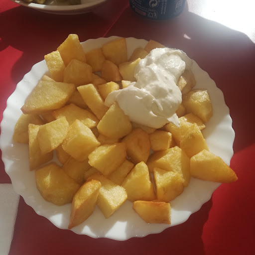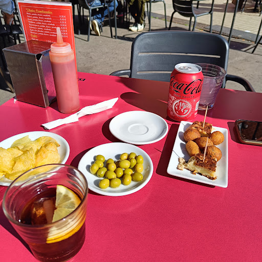 Read moreSon ha servido a mi amiga y a mi tapitas de papas de bolsa normales, aceitunas y dos pares de trocikos de pan con jamón y con otra cosa rara que no se lo que era pero no estaba mi gueno. Lo mejor han sido la aceitunas porque las patatas habían tres contarás y lo otro el pan estaba blandengue y había súper poca guarnición en los trozos de pan (adjunto foto pero no aparece toda la comida) No han salido a cobrarnos encima que estaba lloviendo que flipas y me he tenido que mojar No hay papel en el baño ni pestillo (mujeres). Caía un montón de agua de la sombrilla de la terraza y a mi colega le ha caído toda encima se ha encharcaojjJajaj Me han dicho los trabajadores varias veces preciosa, cariño, bonita y nena para dirigirse a mi. No se como han sido las intenciones, pero a mi no me gusta ese trato tan superficial y próximo....