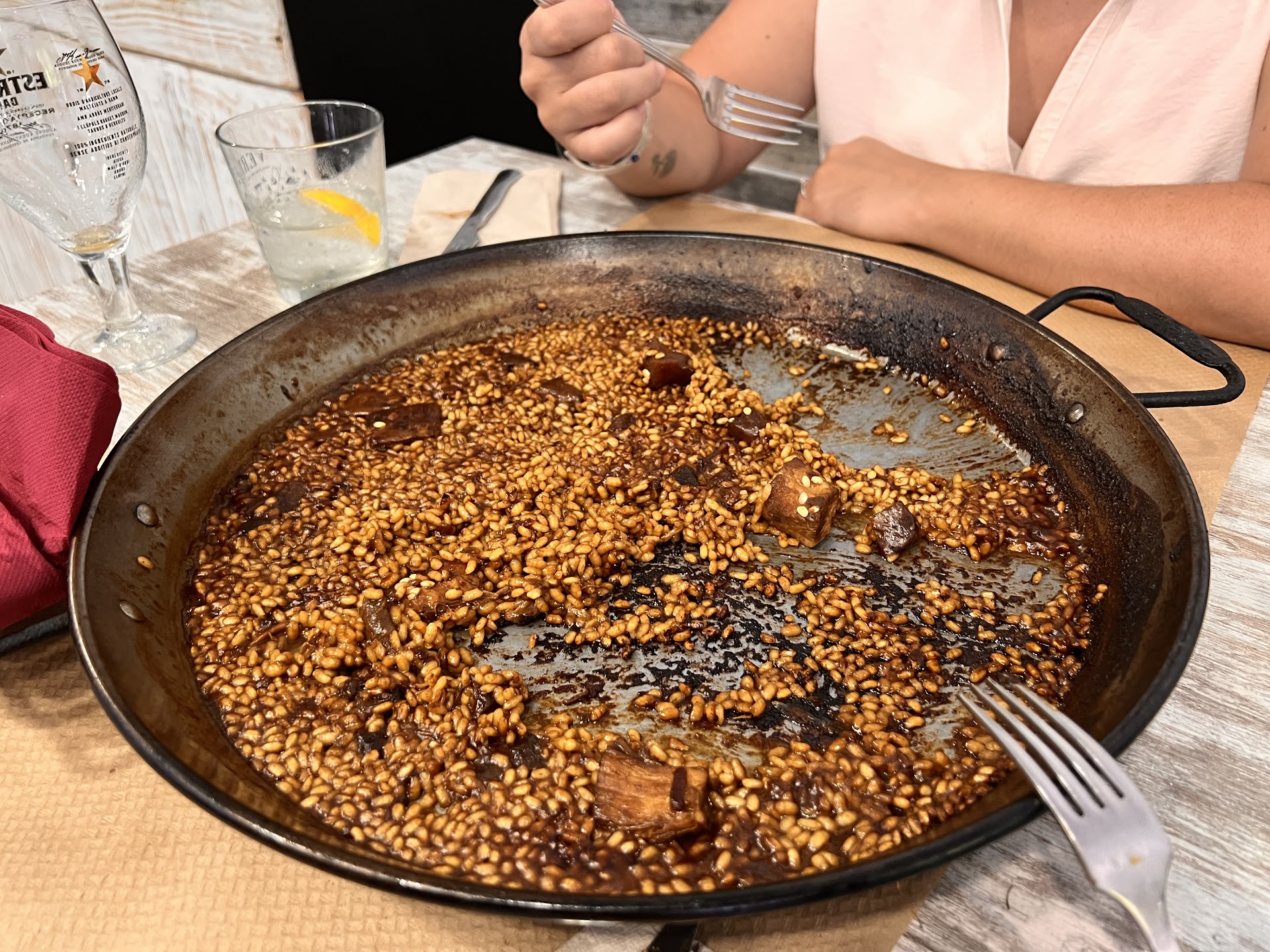 El sabor y la consistencia del arroz realmente destacaron, aportando una base deliciosa a este plato clásico. La paella en este restaurante es sin duda uno de los mejores que he probado, y gran parte de ello se debe a la excelente calidad del arroz que utilizan. Además, la combinación de sabores y la frescura de los ingredientes hicieron que la experiencia culinaria fuera aún más excepcional.
