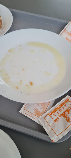 En resumen: frío incómodo dentro, comida mal presentada (un bocadillo empapado en aceite), y un servicio poco agradable. Con todo esto, no...
