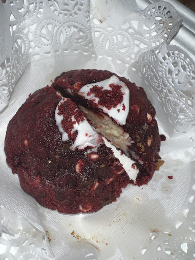 Hoy hemos pedido temprano por la mañana y que sorpresa mas agradable cuando recibimos el Uber y las galletas estaban CALENTITAS! Nos encanta el detalle que tanto la primera como la segunda vez nos envian un detallito, un alfajor monísimo. Hoy pedimos pistacho y dulce de leche de nuevo y para probar otro sabor la de RedVelvet, esta deliciosa con ese relleno de cheescake. La galleta de pistacho como estaba calentita se rompia mientras te la comes, increíblemente buena.