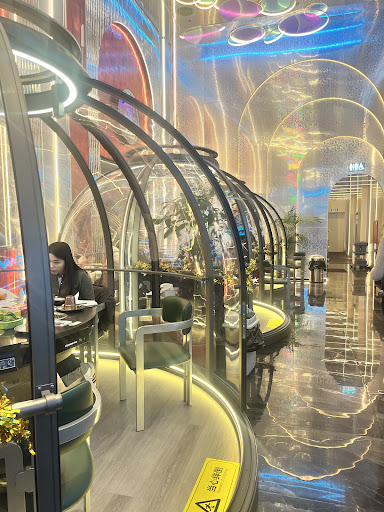 Ambiente - 4 Muy particular y llamativo, aunque da la sensación de ser un pupurrí de varias ideas, que si futurista, que si tradicional, que si espacios cúpula minimalistas. Todo ello adornado con mucho plástico, en concreto había verduras de plástico de adorno, lo cual desentonaba un poco. En cualquier caso, seguramente sea lo suficientemente instagrameable como para cumplir las expectativas de los influencers. Los aseos eran decentes.