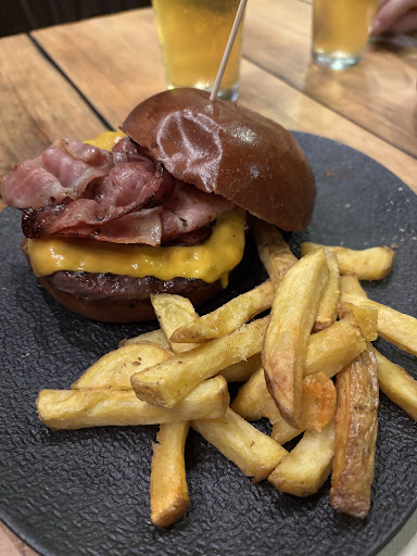 Read moreFuimos 4 a cenar, es una nave industrial que tiene una parte donde fabrican las diferentes cervezas, tienen de muchos tipos tipos, incluso 0,0 hay como 5 o 6, si te gusta la cerveza tienes que venir a probar!! El personal es joven pero saben lo que hacen, son simpáticos y te ayudan a elegir entre tanta variedad. Las hamburguesas estaban muy buenas, los huevos estrellados para mi gusto no le encajan las patatas fritas que ponen… no pueden ser las mismas que se ponen de acompañamiento, es mi única pega. Las bravas y el humus riquísimo! Volveremos a repetir algún día. Va bien ir a cenar en grupos y más si luego quieres salir de fiesta...