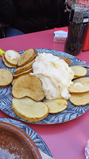 No lo recomiendo. Dentro no se puede estar por el olor a fritanga (insoportable). Fuera te toca aguantar una clientela muy maleducada, lo mismo gritan que cantan, con niños correteando por las mesas, tirándose agua, chillando y dando balonazos contra las persianas y las paredes... y los padres y el personal del bar sin decirles nada, será que les parece normal. No es un sitio agradable para tomar o comer algo tranquilamente. Hemos probado varias veces y siempre ha sido igual (esta última vez fue el sábado noche, viendo que es el ambiente habitual ya hemos...