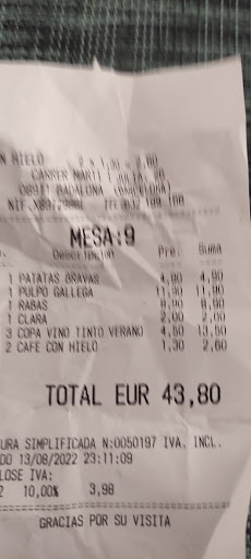 Read moreIba bastante con mi familia hasta que una noche nos tomaron el pelo, nos sirvieron dos hamburguesas desechas diciendo no sé qué del cocinero, y digo yo, ¿no es mejor ofrecernos unas tapas o algo que no eso que no se podía comer? Es que, además, viendo que las dejamos en el plato, nos las cobraron igual. Además, nos intoxicaron, estuvimos por la noche vomitando y demás, no me quiero imaginar cómo manipuló la carne ese cocinero. Del precio abusivo de un vermut ni hablamos. Y el colmo ha sido esta mañana cuando mi pareja baja a buscar dos bocadillos "'un lomo queso y un bacon'" y al abrirlos en casa vemos un bacon queso y uno de ATÚN. He querido darles un voto de confianza y me he arrepentido. Por mi parte y los 6 integrantes de mi familia, este restaurante...