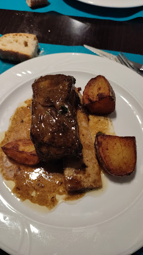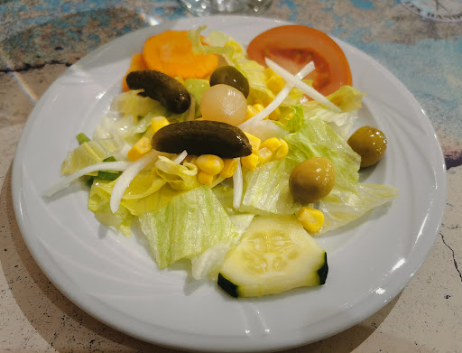 Porque una imagen vale mas que mil palabras, voy a poner dos imágenes, donde se puede apreciar lo que comí la primera vez que asistí al local, cogí medio menú, que prometía, al tener ensalada de entrante, ser suficiente, y bueno, viendo platos que pasaban por la sala he de decir que parecían algo mas generosos, pero como no fue en mi caso personal, voy a poner lo que te vas a encontrar si pides medio menú, ensalada de primero y dorada de segundo, Un trato amable, una ensalada de cantidad irrrisoria y sin amor ninguno en la preparación, 10 minutos de espera entre platos para llegar una dorada al horno que no le sobraba ni un minuto de horno (si hubiese estado 5 minutos más de horno habría estado en su punto) y las girgolas a nivel de la ensalada, amor 0 en su cocina, No puedo poner mas nota porque lo que he comido hoy estaba muy muy justo, y las fotos que encuentras en google son un...
