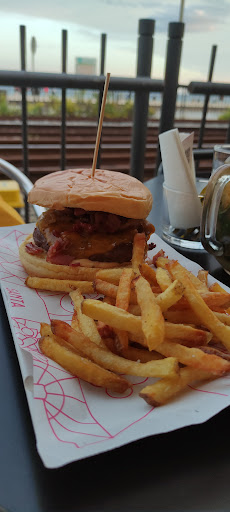 (3,9) Ens n'havien parlat molt bé, així que ens hi vam dirigir. AMBIENT: Vam escollir menjar a dins, perquè ens va semblar més acollidor i bonic, que no pas una terrassa de rambla. Dins hi havia poca gent. Una taula a baix, a prop d'on érem nosaltres. I aquí ve la nota negativa, que aconsegueix embrutar la bona feina del local: la música. La música estava a un volum inadequat que impedia mantenir una conversa sense haver d'anul·lar-la mentalment. Vam estar tot el sopar escoltant Reggaetón i Trap. En resum, la música ens va donar el sopar. Ja ens hem trobat en algun altre lloc que ho fan ÉS EL MOTIU PEL QUÈ NO HI TORNAREM, exclusivament aquest. MENJAR: Les hamburgueses eren bones. Superiors a la mitja, però sense arribar a sorprendre'ns (com sí ho van fer les d'un altre local visitat recentment). Vam menjar una divina (per l'exòtic que semblava tenir formatge de cabra i salsa de fruits vermells en una burguer) i una mexicana (que avisava de que portava una salsa picant i que en realitat, no picava), però les hamburgueses, no es poden desmerèixer. Son hamburgueses, bones. Bones hamburgueses. Acompanyades amb unes patates fregides, de les d'ara de moda (amb pell), però també fregides al punt. En aquest aspecte, zero queixes. De postres un coulant, ben escalfat, amb lava lliscant al clavar-li la cullera i una bola de gelat de vainilla, correcte. SERVEI: Res a dir, no vam haver d'esperar excessivament amb cap plat, l'atenció va ser correcte, no va haver-hi errors. PREU: 41€ dues persones, no creiem un preu excessiu si les condicions son bones. Tot estava bé, menys el que no era sopar. Llàstima perquè haguéssim puntuat millor si a més de menjar bé, ens hi haguéssim...