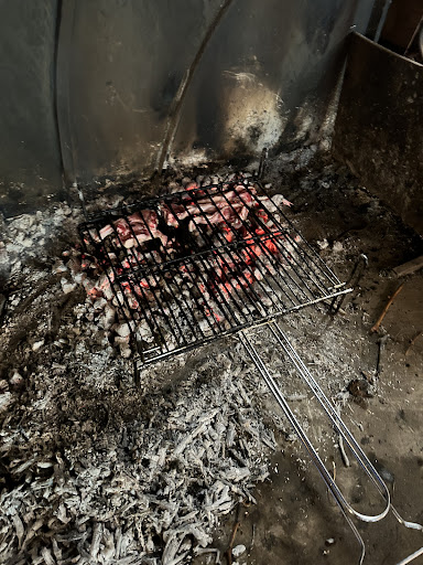 Read moreSon casi las tres y media de un sábado de verano. Hola, me daríais de comer unas chuletillas ?, Si hombre, siéntate ahí mismo. Delante de mi cara, salen de la cocina cinco chuletillas bien escogidas, las pone en la parrilla y al fuego, delante de mi cara a tres metros, (ríete de comer en la cocina de algunos Rest. Michelin) y un momento después tengo unas chuletillas a la brasa, acompañadas de patatas fritas y pimientos, verdaderamente memorables. Y a un precio...