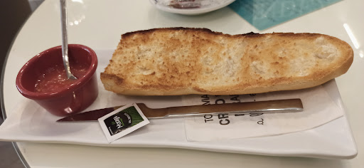 Read moreUna verdadera pena . Dispone de salón ( espectacular de bonito ) y terraza . Nos atiende Andrea ( chica joven morena bajita ) Buenos días , ella no contesta , por favor queremos 2 café con leche , mi marido le comenta que ha visto unos bollos de pan que con que lo podemos comer ,respuesta : con pan ( muy desagradable) Le digo que somos de fuera que si nos ayuda desayunamos y si no nos marchamos sin ningún problema . Ya cambia su aptitud , pedimos 1 rebanada con jamón ,nos dice que hay picado y lonchas . ( Como en toda España ) jajaja En mi tierra no hay picado en los restaurantes .El chico que nos sirvió la tostada muy agradable . No quiero que me bailes , sólo que tengas un mínimo de educación. Si no quieres que los turistas visitemos tú establecimiento pues lo notificas . Que pena que seguro no tienen ni idea los dueños del local de las pocas ganas de trabajar de esta chica . Me pone el tiquek de la asignación de mesa . Llevo cuatro días aquí y TODOS los establecimiento pero TODOS nos han tratado muy muy bien . Andrea mucha...