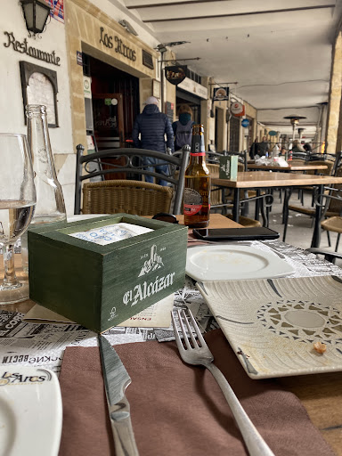 Read moreHan pasado algunos meses desde que estuvimos cenando en Los Arcos,en aquel momento pedimos el menú del día a 15 euros cada uno,incluía primero,segundo, postre,pan y bebida,pero por lo que me han comentado ahora solo sirven a la carta,que pena!.Además nos convidaron con un par de tapas,nos pusieron los muy buenos Ochios Baezanos con picadillo de chorizo. De primer plato elegimos berenjenas fritas con miel y revuelto de espárragos y morcilla de caldera.Las berenjenas estaban muy buenas,crujientes, doradas y con cantidad justa de miel para no empalagar. Los platos principales fueron carrilleras estofadas y solomillo de cerdo con salsa de almendras,ambos con guarnición de patatas y pimientos rojos y verdes. Las carnes estaban muy tiernas,la carrillera una mantequilla y las salsas sabrosas,suave la de almendras y más suculenta la del cerdo estofado. El postre casero,tarta de chocolates negro y blanco y crema,fue delicioso. Todos los platos desde los primeros hasta los postres han sido muy abundantes. Destacó la atención de Felix,simpático,ágil y profesional. Cenamos en una mesa de la terraza bajo los soportales. Quisimos repetir el día siguiente pero no pudimos por ser martes,día...