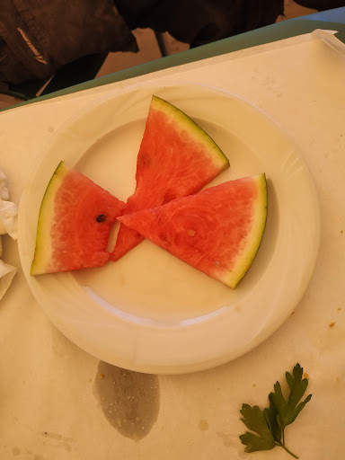 El tercer dĂa fuimos a comer de menĂș entre semana: para el precio del menĂș (10'50âŹ) platos muy pobres. De primero pedimos pasta, el plato estaba bastante lleno y bien, simplemente eran lazos de pasta con salsa roquefort. De segundo pedĂ guatlles y me trajeron una pobre guatlla (es todo hueso, podrĂan poner 2) y 5 patillas fritas y 3 (literalmente 3) tiras de escalivada. Mi chico pidiĂł albĂłndigas y le pusieron 4 contadas literalmente. De postre del menĂș yo pedĂ pastel de crema catalana y mi chico sandĂa. Le trajeron esta ridiculez de sandĂa.