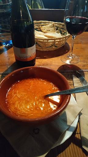 Lugar amable, acogedor e informal. Sin pretensiones. Nos regala con un ambiente sosegado donde degustar los mejores platos caseros, enunciados en voz alta - con paciencia y a la antigua usanza - por un camarero sencillo y eficiente. Entretanto, desde los fogones, una cocinera digna de mención nos hace revivir con gran acierto olores olvidados de la infancia. Comer en este restaurante es además un regalo a la reflexión, al saborear cualquiera de sus guisos siendo presididos por el respeto a la tranquilidad. Un total de ocho platos conforman un menú de 16€, junto a los complementos y el postre, que se pagan merecidamente. Digno de mención es el vino tinto de uva Mencía, afrutado y joven, de las bodegas Arturo Garcia y cuyo nombre es Hacienda Sael. En resumen, un sitio delicioso muy recomendable para el viajero que busca la aventura en cada rincón y en cada vuelta del...