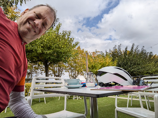 Read moreI was rolling through Banyoles on my bike looking for a place for lunch. When I saw the bike on display in the window, I knew this was the right place. It has proper bike parking, and sells bike nutrition if you need any. It was a place where I felt ok being in lycra lol. I didn't take a pic of the sandwich because I attacked it so quickly, but it was good. Nice ham and tomato, open face on fresh bread. I just got a pic of me and my coffee. The server was friendly and helpful, and he filled my water bottle for me. (Many places look at you blankly when you ask for a water bottle fill) The young lady behind the counter spoke English, was very helpful, and packed up some cake for me to put in my back pocket for the climb. It was very good when I took bites from it on the way up and at the top of Rocacorba. I recommend Aquarium as a place for cyclists to stop...