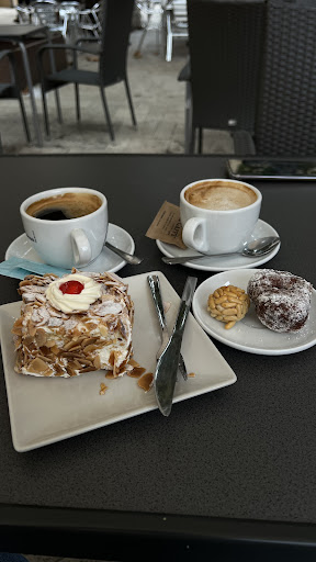 Read moreFue de pasada para merendar una tarde que fuimos a unas fiesta que hacían en el pueblo , sitio típico que no sabes que escoger entre todo lo que tienen . Muy buena calidad y variedad .