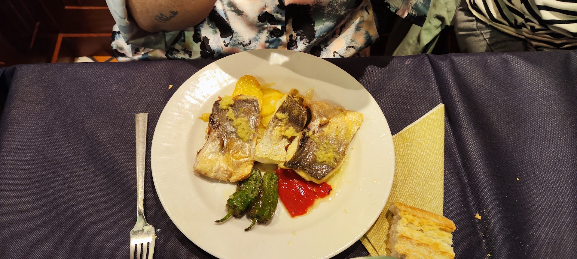 Read moreNunca habíamos ido a cenar a este sitio, me habían contado que la comida estaba buena, el sitio está bien y es tranquilo y el personal es muy amable y servicial. Pedimos ensalada, pulpo y una sartén de criollo además de unos langostinos a la plancha. Yo que soy mucho de pulpo pues la verdad que no estaba rico, muy chicloso, la ensalada aún siendo muy variada pues no era apetecible comerla pero tampoco es una cosa que le.ponga muchos peros. La sartén de criollo y patatas con huevo no estaba mal, ricas las patatas . De precio lo normal. Otro día iré a probar el menú del día que me han hablado...