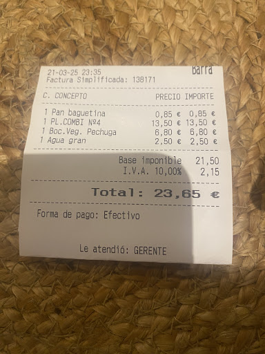 La vuelvo a reeditar por qué si no no se puede contestar………. Esta reseña se publica ahora por qué antes no sé por qué no dejaba es de hace como un año y tenían servicio a domicilio desconozco si ahora tienen o no pero esa fue nuestra experiencia cuando pedimos y conocemos más gente que le paso lo mismo lo dejo claro por si me contesta el dueño que sepa que no me e confundido de sitio……..Pedimos la comida para que la traigan a casa ala 1:30 nos dicen que llega entre las 2:20 2:40 y después de estar esperando nos llega un mensaje alas 3:00 de la tarde diciendo que an tenido problemas con nuestro envío y que no lo van a poder hacer en vez de llamar antes o avisar para si lo pasábamos a buscar una vergüenza no creo que pidamos en la vida y a toda la gente que conozco ya les diré que no se les ocurra ni pedir ni comprar...