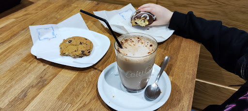 Read moreChica muy simpática, agradable en el trato y profesional. La exposición en los mostradores es muy buena, a un lado lo dulce y al otro lo salado. La apariencia es de estar todo bueno. Nosotros pedimos unos chocolates, un Colacao, una tarta de arroz, un cruasán, una cookie grande y 2 bollos de chocolate. Todo muy bueno, sobre todo el chocolate. Solo un pequeño inconveniente, y no por culpa de los empleados, al llevar las cosas desde el mostrador hasta la mesa del fondo, había una niña pequeña TIRADA en el suelo entre las dos mesas por donde había que pasar, por lo que había que pasar por encima con el riesgo de tirar las cosas. La madre con una amiga en la mesa de al lado y no hacía nada. Si tienes suerte de que cuando vayas no te encuentras a esta "madre" disfrutarás del lugar...