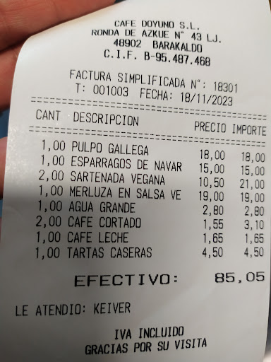 Read moreVivo a 5min del doyuno era uno de mis restaurantes preferentes a la hora de comodidad x cercanía calidad ,servicio y precio,x motivos de trabajo llevo tiempo sin ir ,pero después de ver la repetición del programa batalla de restaurantes ,no quiero pasar ni x la puerta con el perro..me parece un descaro las justificaciones del que lo dirige actualmente,JUSTIFICARSE CON la falta de higiene (DEJADEZ)en algo tan serio como la COCINA es encasillarle en el típico perfil de persona,dejada y solo preocuparse de la facturación. Y aún peor es hacer creer a la gente que la culpa es del personal que buscan que les eches para cobrar la indemnización,CUANDO LOS QUE HEMOS FRECUENTADO REPETIDAS VECES ESTE LOCAL SABEMOS K SI DOYUNO ERA LO QUE ERA ES GRAN PARTE AL PERSONAL QUE INCLUSO A MINUTOS DEL CIERRE IVAS Y TE PREPARABAN UNA MESA SIN LA MENOR CARA DE QUE LES MOLESTABA RETRASAR SU SALIDA DEL TRABAJO solo hay que ver cómo les sigue funcionando el otro local que tienen en el centro de...