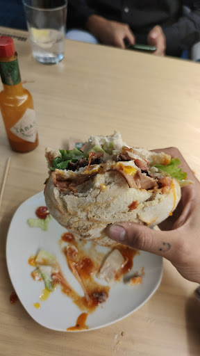 Acabo de comerme lo que llaman un sandwich vegetal con huevo. Ridiculo y vergonzoso. No tiene otra palabra. No se si sera porque como lo he pedido para llevar no tengo opcion de quejarme pero si me lo llegan a poner ahi les digo si me estan tomando el pelo. Dos panes de bimbo tostados y al abrirlo tres rodajitas de huevo cocido, un cacho de lechuga recocida, UNA loncha de jamon y algo que parecia un medio huevo frito todo recocido y medio requemado..en definitiva, el sandwich medio vacio. He probado la hamburguesa viuda de pollo en un pan gomoso y ni siquiera un poco tostadito, una carne rosa y muy salada..tambien he pedido una racion de patatas con alioli, metidas directamente como una bola dentro de papel albal con un sabor a ajo que echa para atras.. Desde luego barato sera pero vamos los que han escrito opiniones, o son amigos de los dueños o les han pagado por ir... No vuelvo...