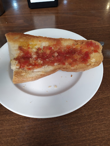 Read moreBuen restaurante de carretera, con mucho aparcamiento, para coches, autobuses, camiones, etc. Se encuentra en un paisaje bastante bonito de apreciar, muy verde. Dispone de una barra amplia en el interior, junto con varias mesas. Pedimos desayuno básico, café (te dan a elegir entre grande o pequeño) y tostada de aceite con tomate, personalmente fue bastante decepcionante, café en su mayoría leche, se aprecia bastante blanquito y sabe mucho más a leche, la tostada el pan bastante rico, aunque algo duro, te dan aceite envasado, que no está mal, pero también te dan una tarrina de tomate que no llega para cubrir la tostada, sin sal y bastante escueto. No sé qué tal se come, no puedo valorar ese punto, los bocadillos que se pueden apreciar no están mal, habría que ver el contenido, la cantidad y su precio. La atención fue...