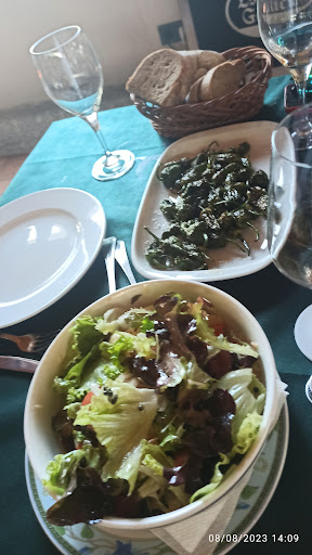 Read moreFuimos de cena 4 personas porque nos recomendaron el sitio, pero creo que tiene ya LA CRUZ ENCIMA. Gente que comenta maravillas de esta sito había que saber si están presentes o no. Pedimos Pulpo a Feira 》》》Qué decir Pulpo duro y sin sabor y con una mini patata entera para 4. Me lo dan mejor en una Feria que ahí. 4 entrecot 》》》Creo que fue lo mejor de la comida. Después ya se nos quitaron las ganas de seguir comiendo porque entre plato y plato creo que nos dio tiempo a hacer la digestión. Los Camareros de ATENCIÓN UN CERO. Les pedías algo y tardaban casi 20 min en traertelo. Local con una temperatura baja se notaba el fresco, se lo dijimos a la camarera y nos dijo que la Caldera ESTABA BLOQUEADA, EN SERIO??? Es para mearse de risa sin echar ni gota. No creo que volvamos a repetir hasta que cambien de gerencia porque la verdad que o merece la pena gastar Gasoil del coche para ir a cenar...