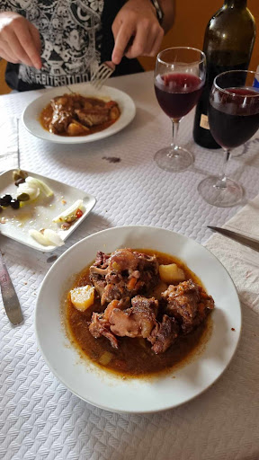 We ordered a stew each, wine + lemonade (typical of the region), and russian cake to share for dessert + cortados.