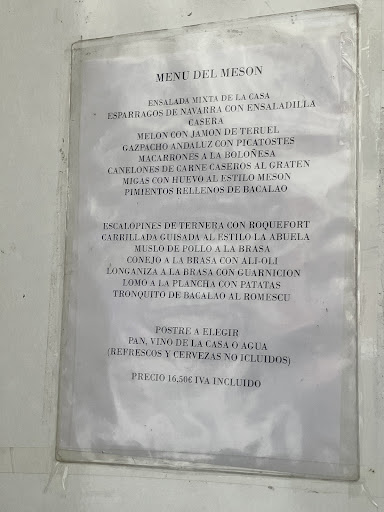 Read moreHemos comido dos personas, entrante y plato principal, incluye agua y postre. La calidad de la comida es impresionante, cocina tradicional. Hemos comido espárragos de navarra con ensaladilla casera y canelones de carne caseros al gratén como entrantes. Los platos principales han sido carrillada guisada al estilo la abuela y tranquilo de bacalao al romescu. La comida suficientemente abundante, se incluye pan también en abundancia y el precio está sobre los 35 euros con dos cafés solos extra al menú (aún no hemos pedido la cuenta). Nos ha encantado. El dueño muy atento y pendiente de todo, un 10. La camarera...
