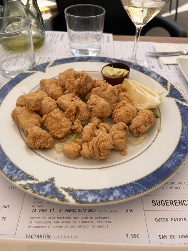 Tienes los platos clásicos (pedimos cazón en adobo nos encantó) y otros mas actuales siempre con la base del atún rojo. De éstos pedimos algunos de los premiados en rutas del atún. El tactartún (uno para cada uno) muy rica, atún rojo sobre una torta de maiz, el toque de la lima con el atún nos gustó mucho. El wagyatún un tataki de atun con mango y pure de patata dulce. Este plato no nos convenció, cada ingrediente por separado estaba rico pero el conjunto no le vimos sentido. El puré de patata demasiado protagonista cuando debería serlo el atún.