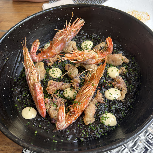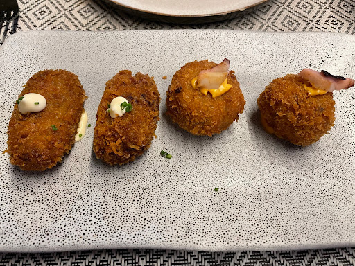 Nada más sentarnos nos han recibido con unos chips de yuca con mayonesa de aperitivo: crujientes, originales y sabrosísimos, una declaración de intenciones. Empezamos con unas croquetas de jamón increíblemente cremosas, de las mejores que hemos comido en mucho tiempo. Se nota que trabajan el producto con mimo y técnica.