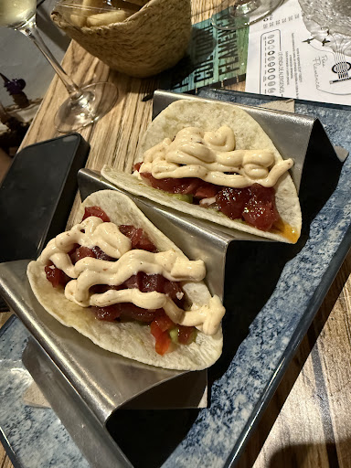 Read moreEstuvimos cenando anoche, la comida bueno, la ensalada “templada” de pulpo, fría, totalmente fría, como la ensaladilla rusa. Las croquetas de gambas nefastas, además éramos 3, le pregunté cuántas venían en la tapa y no me dijo nada, la pedimos y resulta que eran 2. El montadito de presa tuve que recortarle pan por todos lados porque el filete casi ni se veía, buen sabor eso sí. El atún encebollado muy muy bueno, por sacarle alguna pega, poca salsa. Lo mejor fue las gambas al ajillo (aunque una tenía cáscara pero es normal, no me asusta) y sobre todo los tacos de atún rojo, excepcionales, increíbles, los repetiríamos de no ser porque claro, al no tener carta de vinos (y aún siendo gente del pueblo…) pedimos un frizzante, una de las camareras nos dice que no lo venden apenas! Para nuestra sorpresa en la cuenta, 18€ una botella de 2,70€ del Mercadona… si me vas a cobrar 18€ por cada una habiéndose bebido 2 entre 3, que mínimo que no se vea el logo de Mercadona en la parte trasera!!!! La atención bastante nefasta por parte de Saray, nada que ver con otras veces, que parece que es la que parte el bacalao allí, al punto de tener que llamarla varias veces para pedir cualquier cosa, sin embargo había otra chica (aparentemente rusa, ucraniana o del este en general) que apenas hablaba español pero hace un trabajo sobresaliente, es la única que estaba pendiente de las mesas! Las fotos pueden hablar de los platos probados. De no ser por el viaje que nos llevamos con el frizzante, volveríamos… con una botella pagaron literalmente la caja de...
