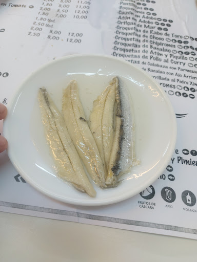 Read moreLa experiencia nos ha sido agridulce cada vez que hemos venido aquí. La comida esta buena. Los precios no están mal. El problema es la cantidad de comida que ponen en muchos de sus platos. El atún por ejemplo, que está espectacular y siempre lo pedimos, tiene una relación cantidad/precio buena y merece muy mucho la pena pedirlo en cualquiera de sus opciones. Por lo contrario, las medias raciones de fritos que hemos pedido cada vez que hemos ido, a una media de 8 euros por cada media ración, vienen tamaño de tapas. Por ejemplo, los chocos fritos, pagas 8 euros por una media ración minúscula, tamaño de una tapa.....una tapa de 8 euros para una sola persona. Donde normalmente en otros sitios, con 3 medias raciones de fritos comemos, aquí no nos llega ni para degustar. La relación precio/cantidad es tan desequilibrada, que es carísima. Es un bar que merece la pena ir, pero solo para comer ciertas cosas. Con lo cual conforme vas yendo y pidiendo, vas descartando los platos que, por la cantidad que trae, no merece la pena pedir en las siguientes visitas y que resultan muy caros por la poca cantidad que traen, a pesar del buen precio que tiene en carta. El problema en sitios como este, es que te ves muy limitado para pedir, porque se te apetece comer otras cosas de la carta, y que no pides por lo que que vas a pagar a cambio de la ridicula cantidad que trae. Es por este motivo por el que solo le puedo dar 2 estrellas. Por lo demás bien y el...