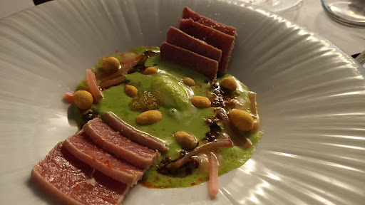 Read moreDelicias de atún con mezcla de sabores del mundo💚. 🍽🍽 Qué nos gustó todo❤️. Lo único difícil fue decidir qué pedir. Comenzamos con la rusa, muy buena, para nada la rusa tradicional, lleva mayonesa de sriracha, cebolla crujiente y tobico. El tiradito de atún delicioso 😍 con wakame, guacamole, cítricos y salsa nikkei, brutal 😍 El atún picante exquisito ❤️❤️, puro atún con sésamo y wuakame, nos encantó. Seguimos como no podía ser de otra forma con el Nido del Mezkla, pasta kataifi, tartar de atún, huevo frito y trufa rayada 😍💕, un must de este sitio, buenísimo 😍. Terminamos con la tarta de queso, qué alegría me dan las tartas de queso que no están bañadas de mermeladas de frutos rojos, o nata👏👏 esta lleva toffe y helado de yogur😊 💶💶Buena relación calidad -precio, pagamos 37€ por persona, sin 🍷y con 🍰. 👩🏽🍳👨🏽🍳 Muy buen servicio, atento y muy profesional. 🕵Mezkla es una mezcla de sabores, cocina viajera de José María Márquez. 😗El restaurante solo tiene terraza exterior con mesas altas, dentro solo está la cocina y la barra para los camareros. 💓Muy chula la decoración, hay un atún que nada por encima de la cocina y un pulpo de vistosos colores cuyas patas salen de una columna. 💚Me encanta el diseño de la carta y las cocinas que se ven desde las mesas y muestran lo limpias y organizadas que están 👏. ⭐El tiradito es un plato peruano de pescado crudo, cortado en...