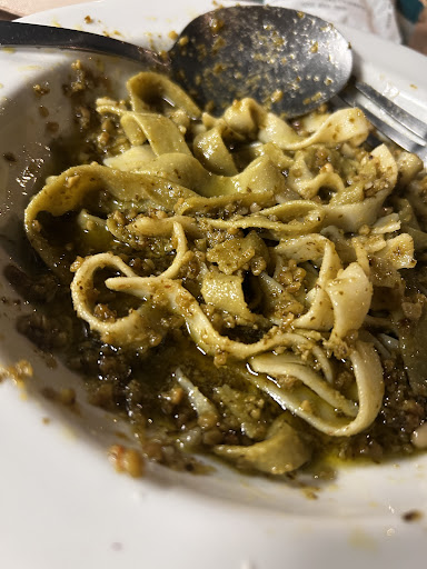 We visited Yerbabuena during our vacation due to the "good reviews" and number of stars on Google. But it's a lie. If you're not a local, you'll be served late, and you'll watch orders from people who come and go being served before yours. We asked, and the response was, "It's because they called by phone," when we arrived at 8:27 PM and were made to wait a few minutes "because they opened at 8:30 PM," so it's hard to understand how there were orders ahead of ours. The pizza we ordered wasn't too bad. The pesto pasta was appreciated for the amount of pine nuts, but the rest of the dish was a soup of oil with pasta. Their prices aren’t bad compared to other places in Barbate, which might explain why the stars on Google are overrated.