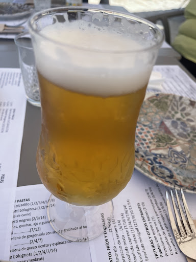 Read moreFuimos en familia , nos sentamos 5 personas con niños incluidos para comer pizza. Nos toman nota de la bebida y nos traen los manteles y el pan. En los manteles ( viene la carta) no hay pizza. Preguntamos l camarero y nos indica que sólo l sirven a las noches y los fines de semana. Pedimos que nos retiren los manteles y el pan pq no vamos a comer pero ya que habíamos pedido la bebida que la tomaríamos aco.pañada de una tapa. Nos indica que no tiene y pedimos unos mejillones. Tras casi beber las consumiciones llegan los mejillones. Pedimos que nos cobre y la la camarera se lleva los mejillones de los que sólo habíamos comido dos( no nos dimos ni cuenta pq se había producido un incidente en el parking y mirábamos para allí). Le decimos que nos han retirado los mejillones y que no los habíamos terminado y nos traen otra ración ( más pequeña 😏) Nos damos cuenta de que en la cuenta nos han cobrado 5 euros de servicio de mesa se lo indicamos a la camarera y nos dice que son las normas que si nos sentamos a comer que va incluido, que si no estamos contentos que hagamos una reclamación. Total: 1 botella de agua + 1 caña + 1 tinto de verano + mejillones = 22 EURAZOS y nosotros sin comer. Reflexión: mal sitio para comer, mal servicio y nula empatía...