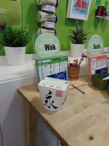 Simple takeaway counter offering maki, nigiri & sashimi, plus wok dishes with noodles or rice.