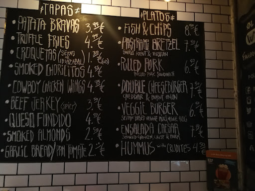 Read moreA good beer hall with own and partner beers. One of the best beer cost tables, by type, alcohol percentage and cost. Don't mix up the alcohol percentage with the price. Typically pints are 7 euros making it quite expensive for an afterworks and it's your turn to 'invite people'.Food is varied and has a typical pricing for central Barcelona. Beers are tasty, especially ales. There's a big selection of porters which is good. Nice bar staff, and you're encouraged to try. As with most tourist areas, it's best to get there early to try stuff (at opening), then there's little hassle getting served and trying things you like (as...