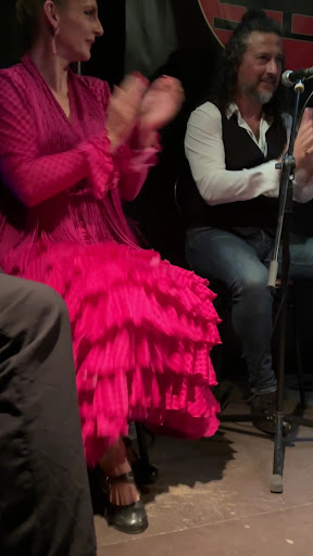 Small, intimate, cash only place that only some people know. Me being that i live around the area have passed by so many times that you wouldnt notice this bar is a magnificent host for talents both in flamenco as well as their local jazz musicians. Entry was 8€ and the seating was very limited (tip: come min. Half an hour before the show starts). I took 3 of my other friends with me to see the show since i‘ve been here solo a few times before and we came in 20 minutes before and was seated literally at the front of the stage i have to put both of my feet on the stage itself lol. The guy taking the cash kind of recognizes my face so he was making kind of a joke about my group being VIP so thats why we were placed front and centre. Overall, very talented performer & musicians that you can feel them groove and communicate with each other without saying a word, barman was kind of an asshole at times though, and the cash guy is a funny grumpy goofball if you can also serve back some roasts to him. 4/5 would be a regular if i lived in...