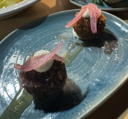 Read moreThis is elevated food at not elevated prices. The tapas menu is inventive, which is welcomed among so many tapas places. Wow... just wow! First we ate the croquetas de berebjena, a creamy and crunchy mix of savory and sweet, with a hint of tart. Next was the tartar de calabacin, brioche de calamares, steak tartar, and the MOST amazing albondigas ever.