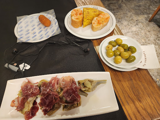 Read moreReally surprised to see such negative reviews from previous folks. Perhaps they upgraded their standards. We went for tapas after an endless flight to Barcelona. Ravenous, sleep-deprived and feeling like zombies we came at about 6pm on a Monday. Tapas were on the menu; dinner starts at 8pm. We had a meal allowance of €35 per person. We ordered a smorgasbord of amazing tapas with a glass of house wine each. Many of these we hadn't eaten before.