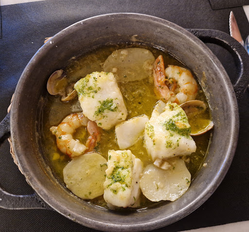 Esperé a que viniese para preguntarle pero apareció un segundo camarero, que empezó a atendernos desde ese momento. Le pregunté si mi plato era merluza o bacalao. A lo que me preguntó que qué había pedido. Le respondí bacalao. Y me dijo muy cortante: Pues entonces bacalao. Me dijo que la presentación era la misma y quizás por eso se confundía porque la guarnición estaba por encima del pescado.