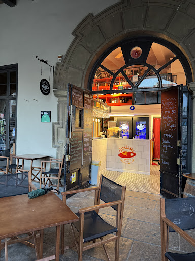 Read moreSábado al mediodía, éramos 2 niños y 3 adultos. El espacio es agradable y la propuesta de platos y bebidas está bien. La comida correcta, sobre todo si tienes en cuenta que estás en un sitio muy turístico, y no tardaron en servirla. Mi nota negativa es por la actitud del camarero. Se veía que se esforzaba, pero era lento, cometió fallos y además con una actitud negativa. Siendo cinco, si pides 2 bebidas y 2 aguas, lo lógico es sacar 3 vasos de agua ya que todos los comensales beberán algo. Cuando mi mujer le pidió otro vaso y aparentemente no nos había escuchado, al insistir mi mujer se giró para básicamente a la defensiva decir que no le metiésemos presión. Después de vacilarnos, se olvidó de traer el vaso y hubo que reclamárselo... Se olvidó de abrir mi cerveza y se lo tuve que reclamar (si eres camarero has de llevar un abridor en el bolsillo). Nos sirvió 2 pinchos de tortilla y no sacó cubiertos. Al reclamarlo, nos saca 2 sets de tenedor, cuchillo y servilleta. Si somos cinco, sacas 5 tenedores. No hace falta que me saques los 2 cuchillos que no hemos pedido. Y si quieres sacar servilletas, sacas 5. Cuando ya estábamos acabando, sin mediar palabra se cruzó en mitad de la mesa y cogió el recipiente de los palillos para llevarlo a otra mesa. En fin, cómo estábamos de buen rollo no quisimos discutir y nos lo tomamos con humor, pero...