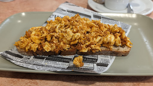Panini eggs with sobrasada and honey is delicious, perfect for a hearty breakfast! Coffee was very light roast and tasty.