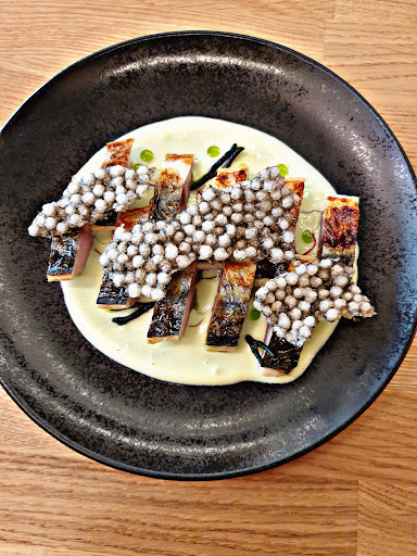 The meal started out well. Nicely designed space. Very friendly staff. We chose the larger of the two tasting menus. The first few courses were flavorful and timed well. However, the restaurant moved two couples to make room for a large party in a rather small room. At this point the timing of the dishes began to lag, usually significantly delayed (20-25 min) toward the end. We stopped being waited on and drinks and refills became non-existent. The group next to us became very loud, drunk, and regularly shouted profanity. Sadly the staff did nothing to curb any of this behavior. We were not sure what special favor they were providing to this group but could not imagine any restaurant that aims to be of this high of a caliber would tolerate this behavior. The courses were now arriving lukewarm at best and bordering on cold towards the end of the meal. At this point having to listen to close to three hours of shouting, swearing, and slow cold dishes we decided to leave before the last course. While the manager was very friendly and handled the situation well (discounted the price), we would have preferred they intervened and maintained a pleasant atmosphere and presentation of the meal. Unfortunately we cannot recommend this restaurant and hope that they can focus on service and presenting their food in a manner that matches the high...