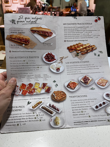 La calidad de la materia prima es innegable, los bocadillos elaborados al instante están para chuparse los dedos, pero yo, que ya frecuentaba el establecimiento hace más de 10 años, he podido comprobar que el nivel va mermando con el paso del tiempo, el tamaño de las raciones son cada vez más pequeñas y su precio va en aumento, a más de un euro el filete de anchoa de origen desconocido; por suerte, lo que no ha variado es el increíble sabor de la mousse de café helada, ésta nunca defrauda. En cuanto a la oferta de "tastets", que se nutre de los productos de la línea de negocio de la charcutería, es correcta para reponer fuerzas mientras se está de compras o se hace una pausa de trabajo. En las horas puntas suele estar bastante lleno, por lo que merece la pena ir un poco antes o después si quieres evitar tener que esperar, de pié y bolsas en mano, hasta que llegue tu momento. Hablando de esperas, creo que ha sido buena idea el poner un expendedor de números que regula el orden atención, antiguamente se producían bastantes conflictos cuando el/la geta de "turno" intentaba ser atendido antes que el resto que esperaba estoicamente. Su ubicación es perfecta, dentro de un centro comercial situado en una zona neurálgica de negocios de la ciudad de Barcelona y en un lugar de tránsito, está cerca de uno de los núcleos de escaleras del mismo. El trato del personal...
