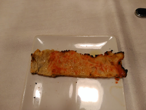 No hay aceiteras en las mesas, hay que pedirlas y os las retirarán muy rápido, no sea cosa que gastéis mucho aceite en un pan de coca bueno pero que viene con muy poco aceite.