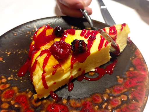 Hay diferencias de tamaño en las raciones en función de los clientes y la tarta de queso era densa y gomosa, como un pegote.