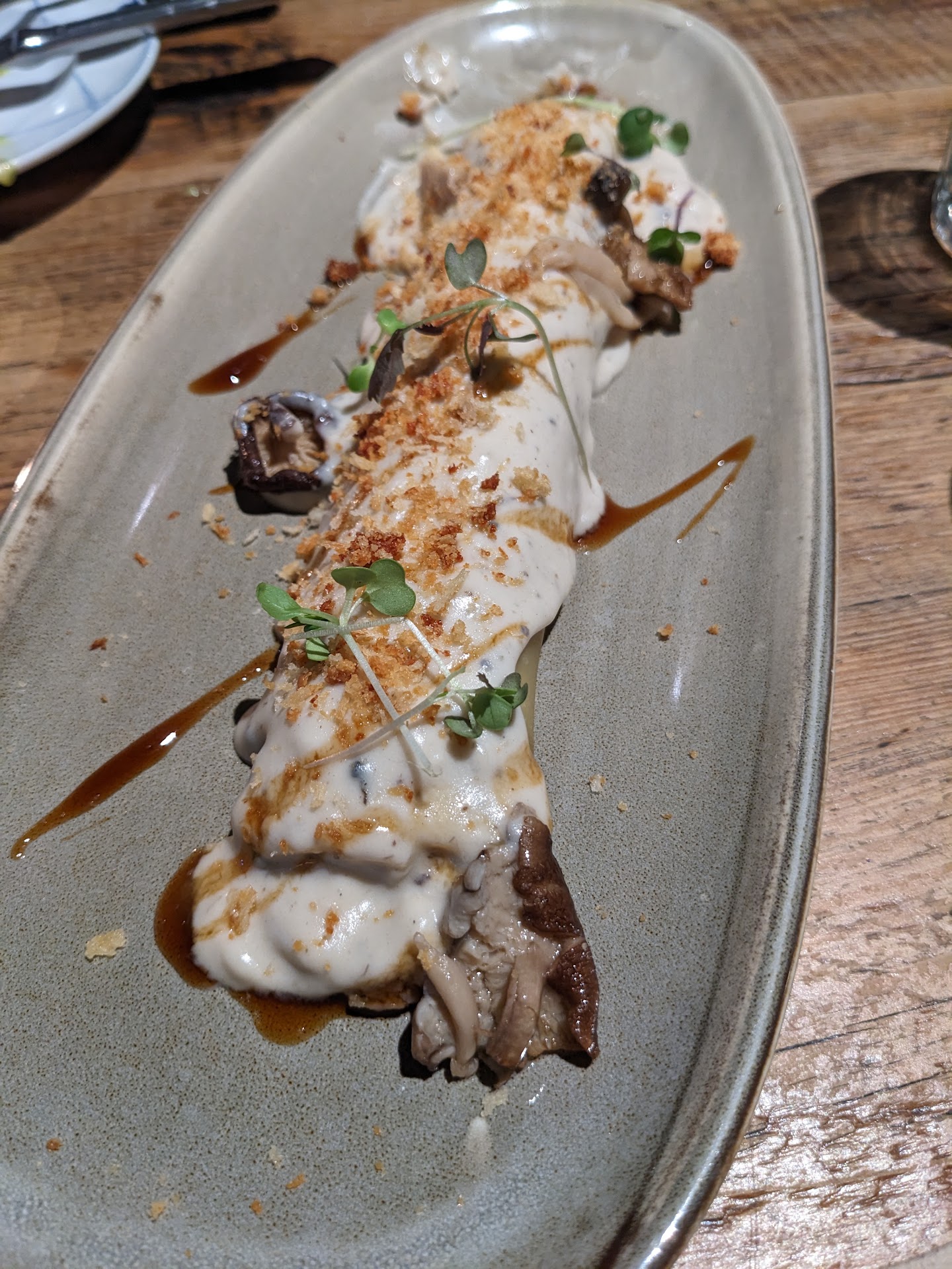 The food was only ok. A couple of dishes were good. The ones I recommend are the "Esferas rellenas de tartar de salmón", the "Salmón marinado 24h", and the canalon. Everything else, including the famous beef tartar were just meh. Some dishes like the "Tabulé de bulgur" seemed taken out of a $10 menu. I have had much better at the Honest Greens chain salad bar. And the "Hojaldre invertido con foie mi cuit y anguila ahumada" and the "Bocaditos crujientes de tartar de gamba" were pretty bad.