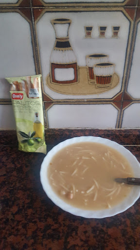 Y ahora mi opinión, estaba yo con apenas batería y como no llevaba el cargador me dejo cargar el móvil, (otros establecimientos si no tienes batería, mal asunto.. he de reconocer que este plato garbanzos y fideos que me llevé me encantarón, no es como el plato de casa, pero se ha acercado muchisimo, en ningún otro lugar que no sea en casa he podido degustar un plato así, muchos lugares parece que es sopa aguada para aprovechar al máximo, y si no se ven garbanzos me pase de hecharle caldo en el recipiente que llevé quedaron garbanzos para el siguiente dia,