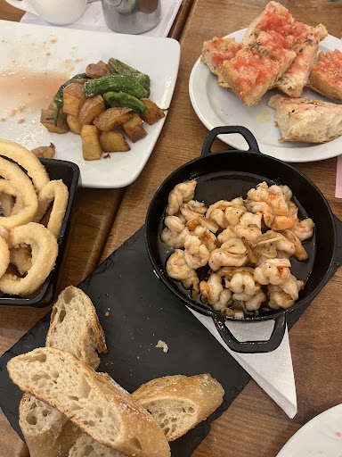 Read moreI came here on a very busy Sunday, around 15:30 pm which was the busiest time in Barcelonetta. I ordered a Sangria and I waited for such a long time for my order to be taken. I was pretty much ready very soon but I kept being dismissed or told they will be right back. In general all the staff were nice but I could see them going crazy running around. I asked for a seafood recommendation since they didn’t do paella for one, at first the person said “everything” which wasn’t helpful, but luckily they did end up recommending the Grilled Prawns in Garlic which were amazing and very tasty. I also had Patatas Bravas (the spicy option) which were also adjusted to eating alone, so I paid less. And I also ordered Padron Peppers. All good! I do recommend but be wary of times you visit or have a table pre booked because you might be waiting a very long time....